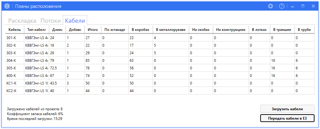 • - В таблицу кабелей добавлены столбцы с длинами кабелей для различных способов прокладки
